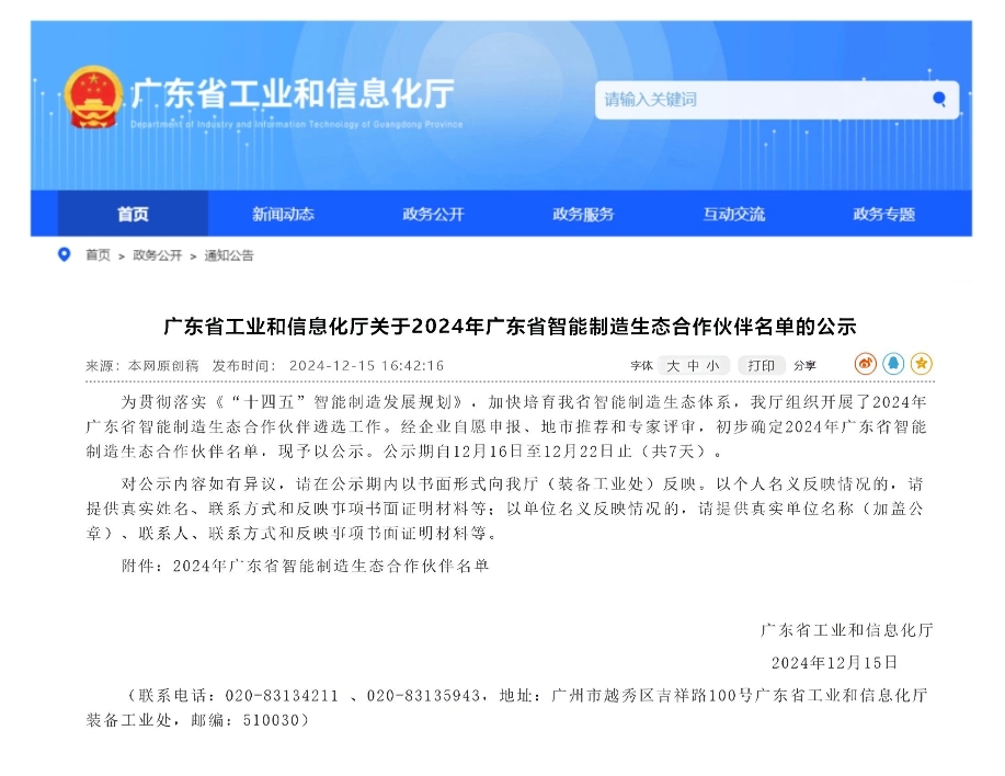 为贯彻落实 《“十四五”智能制造发展规划》,加快培育广东省智能制造生态体系广东省工业和信息化厅组织开展了“2024年广东省智能制造生态合作伙伴”遴选工作。经过严格的资格审查与综合评估,深圳中科德能科技有限公司(简称“中科德能”)凭借在工业互联网通信领域的卓越表现和技术实力,从众多参选企业中脱颖而出,荣膺“2024 年广东省智能制造生态合作伙伴”称号。 这一殊荣不仅是对中科德能技术创新与行业影响力的高度认可,更彰显了公司在智能制造领域的领先地位和重要贡献。