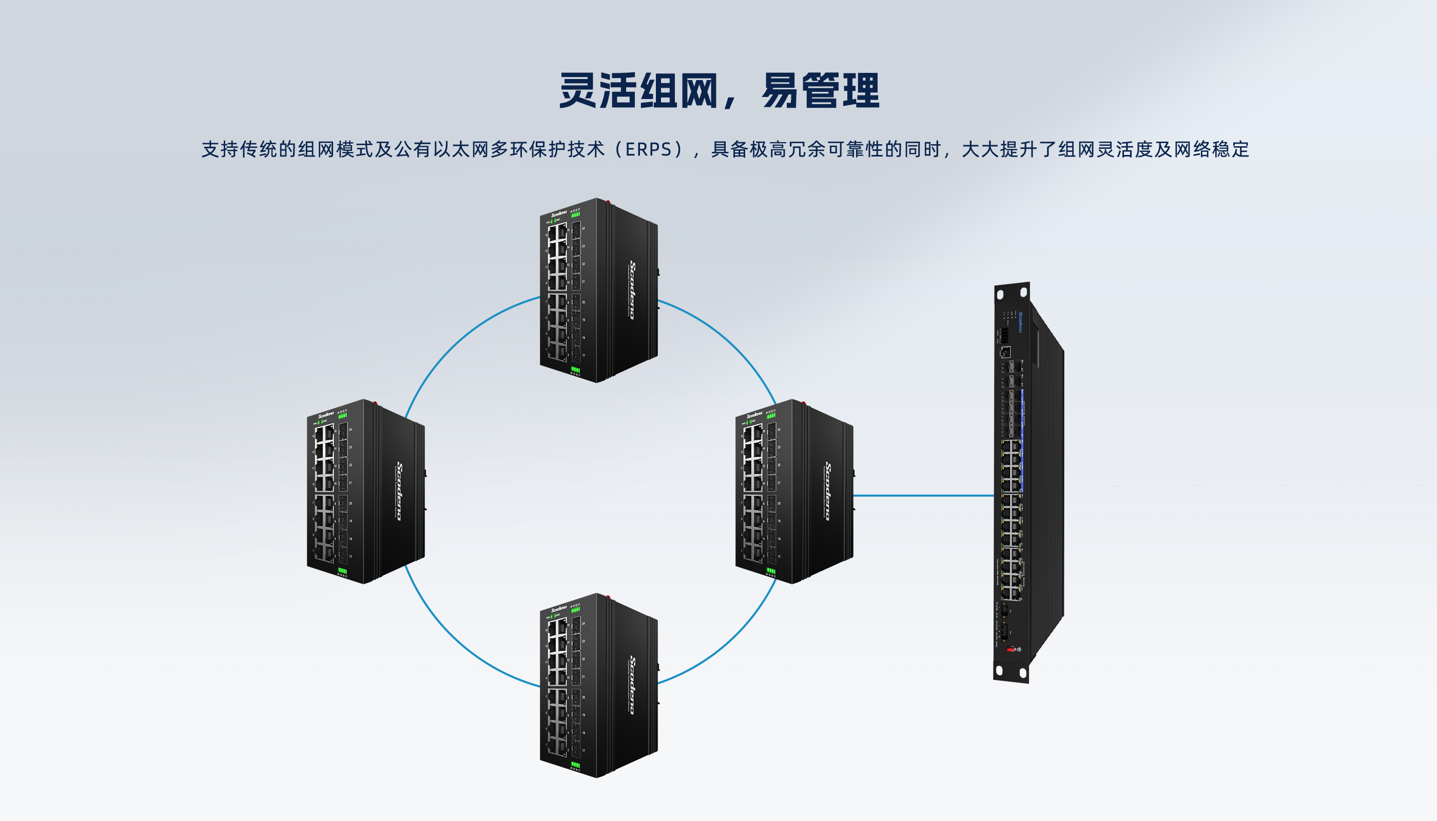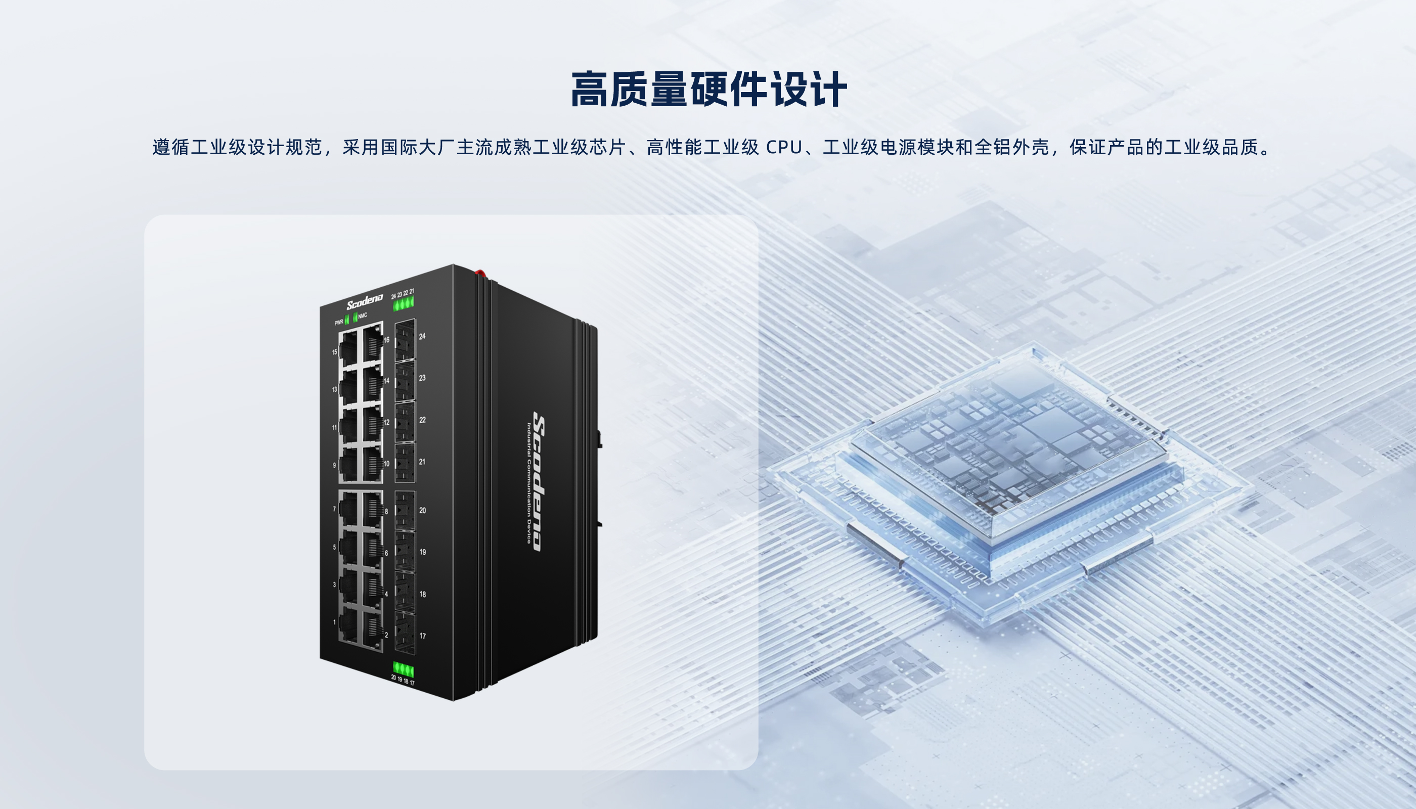 8个千兆光端口和16个千兆电端口的L2+管理型交换机,高缓存且无丢包,兼顾 “骨干传输” 与 “终端互联”,简化组网层级。