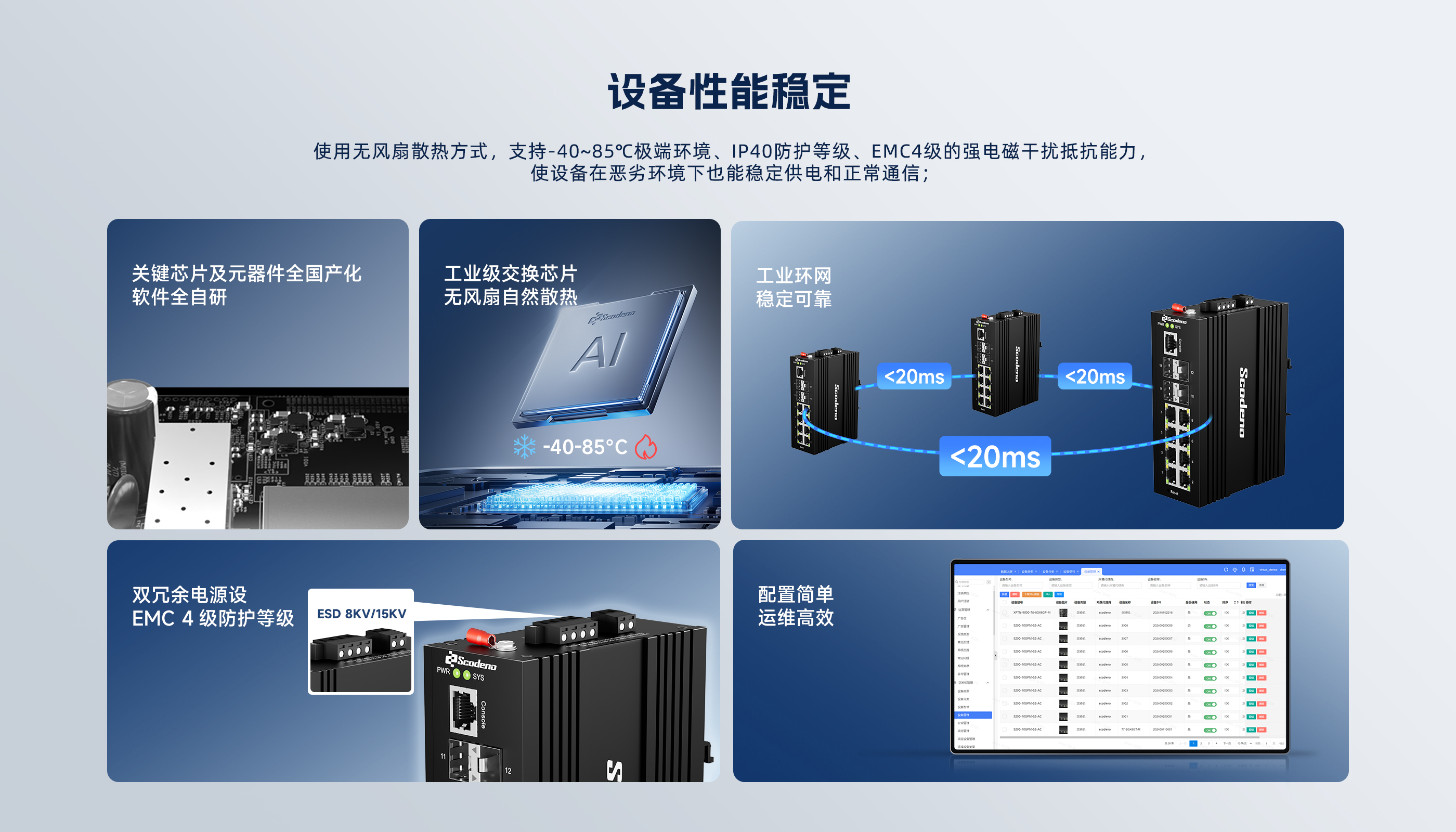 该系列采用冗余直流电源供电,配备坚固的铝合金外壳,通过EMI/EMC高级别测试,并经过严格的老化测试,完全满足工业自动化、交通、电力、能源、油田、煤山矿井等行业的应用需求。