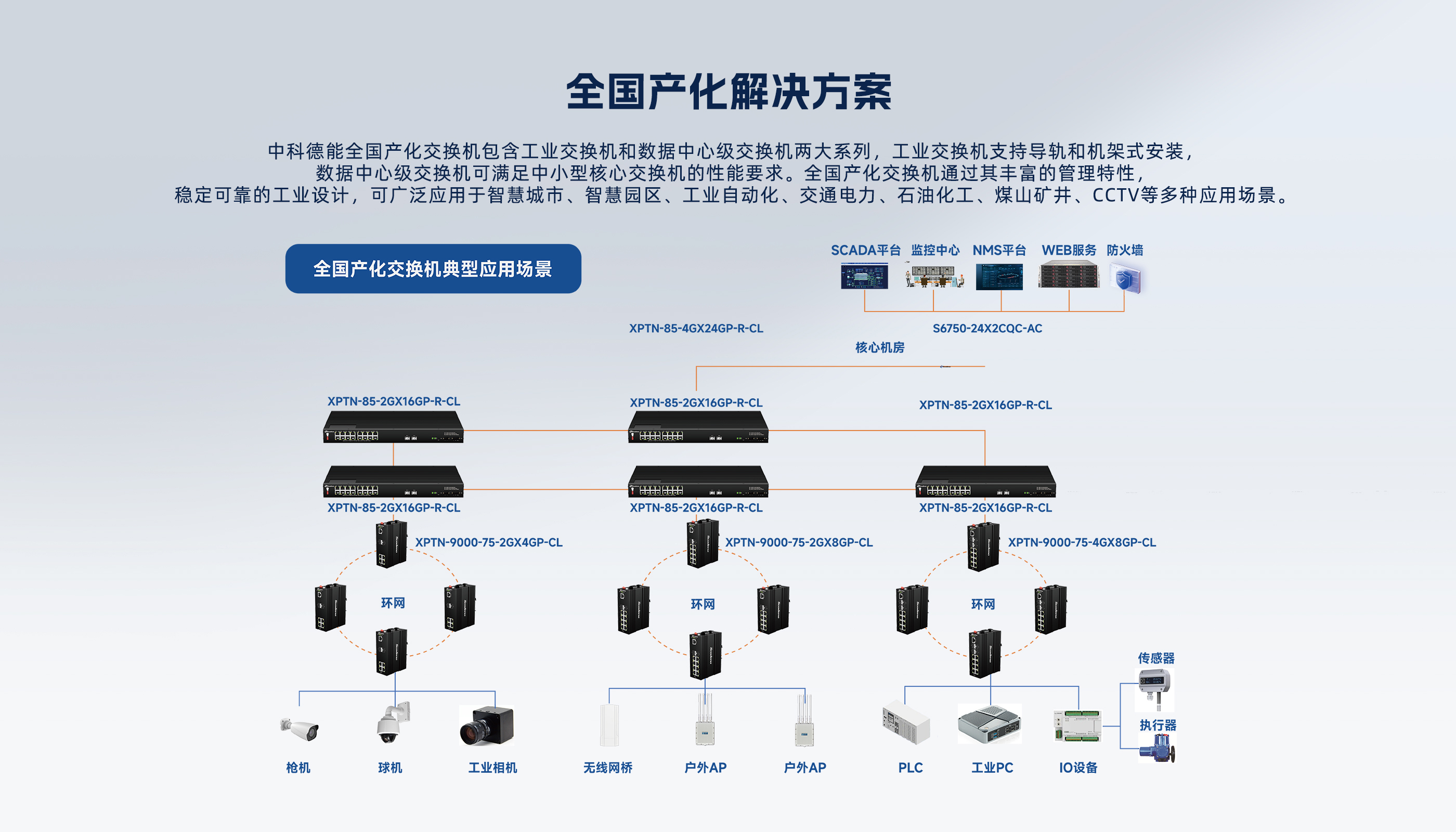 XPTN-9000-85 国产化系列工业交换机是轻管理型交换机,专为严苛工业环境设计,为工业以太网提供经济高效的解决方案,支持-40℃至75℃的宽温工作范围。
